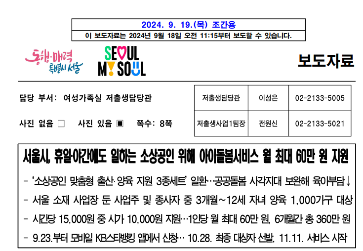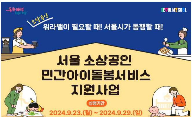 ◎ 서울시 소상공인 위한 아이 돌봄 서비스 월 최대 90만 원 지원